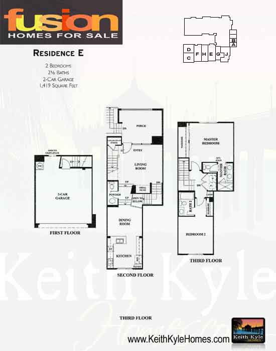 The Plan E townhomes feature over 1400 feet spread over 2 floors. The homes feature open kitchens as well as spacious living rooms and laundry on the first floor. It has an attached 2 car garage. All Fusion townhomes have central A/C and heat.